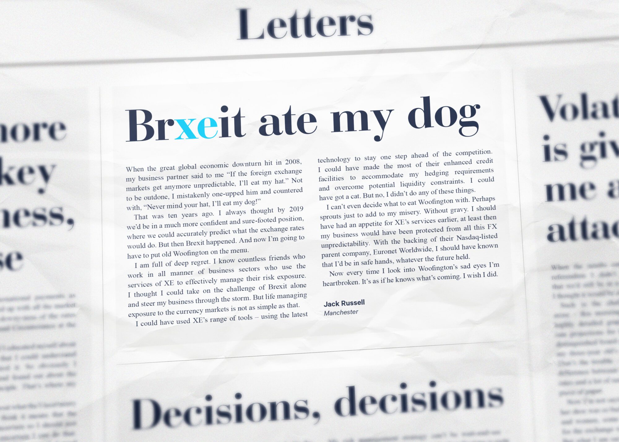 We created BRXEIT CERTAINTY – a bold and disruptive campaign that made Brexit ownable by XE – by switching around the letters to place XE at the heart of Brexit and a confident solution to the chaos.