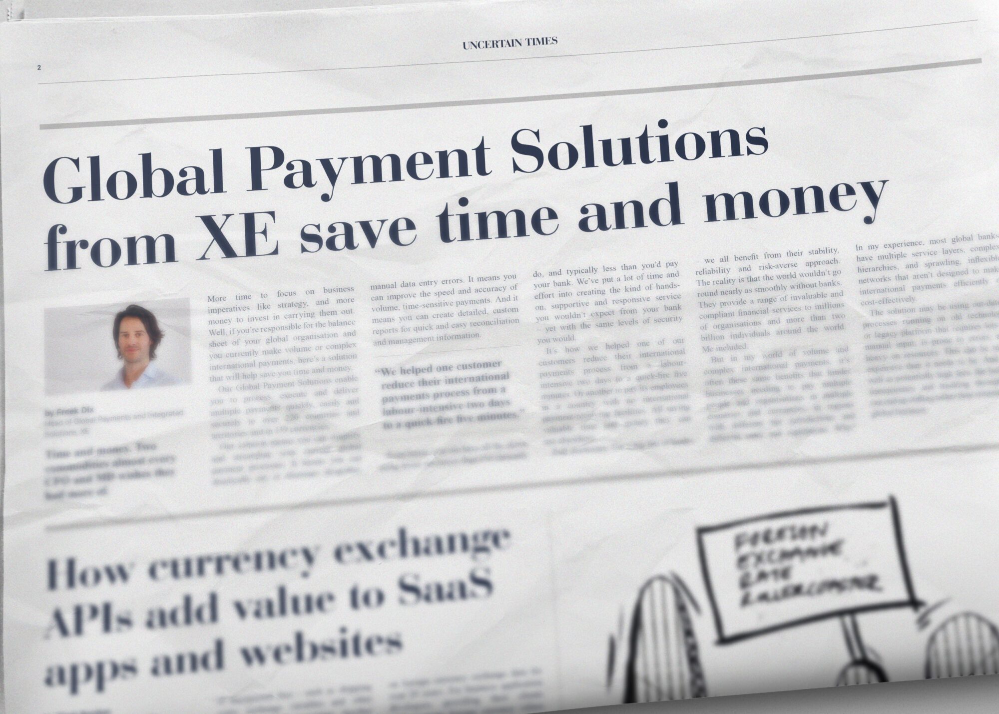 The hero piece was Uncertain Times – a piece of direct mail in a disruptive newspaper format, featuring 8 spreads of witty editorial, expert analysis, and pointed commentary, driving readers to sign up to XE’s BRXEIT webinar – a guide to how XE can help reduce FX risk in their business.